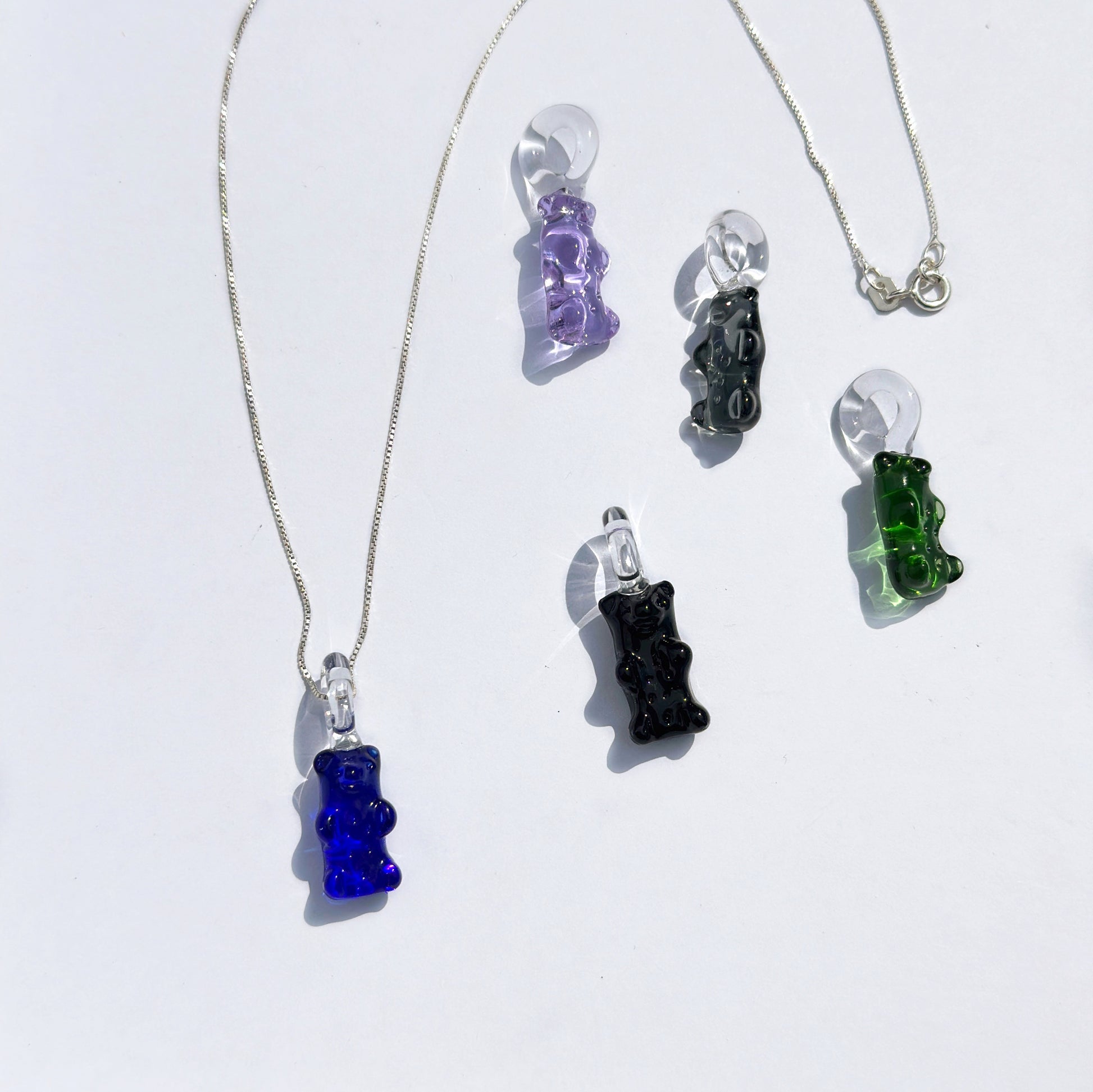 Collar con cadena de plata .925, con dije bear de vidrio soplado.