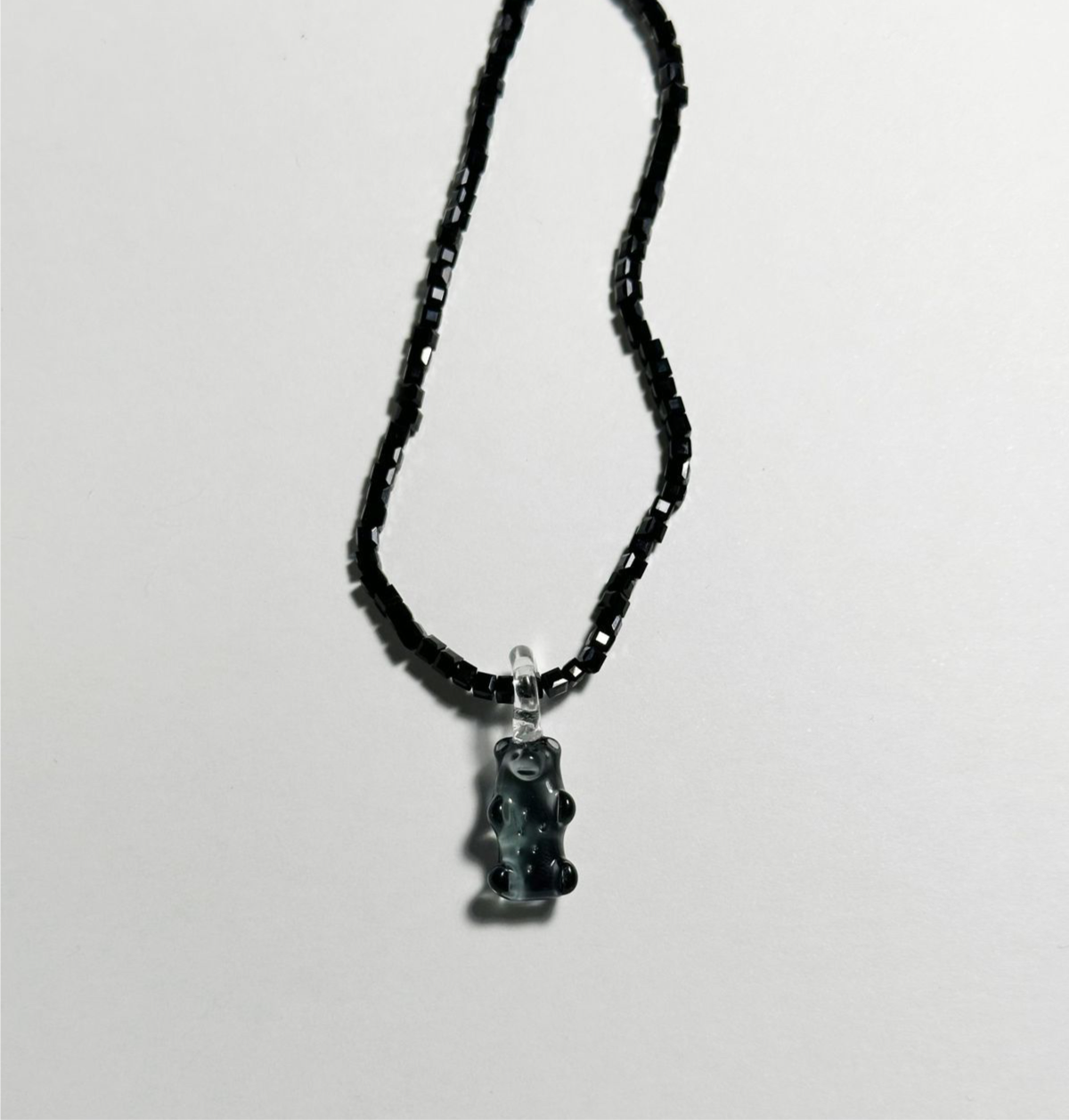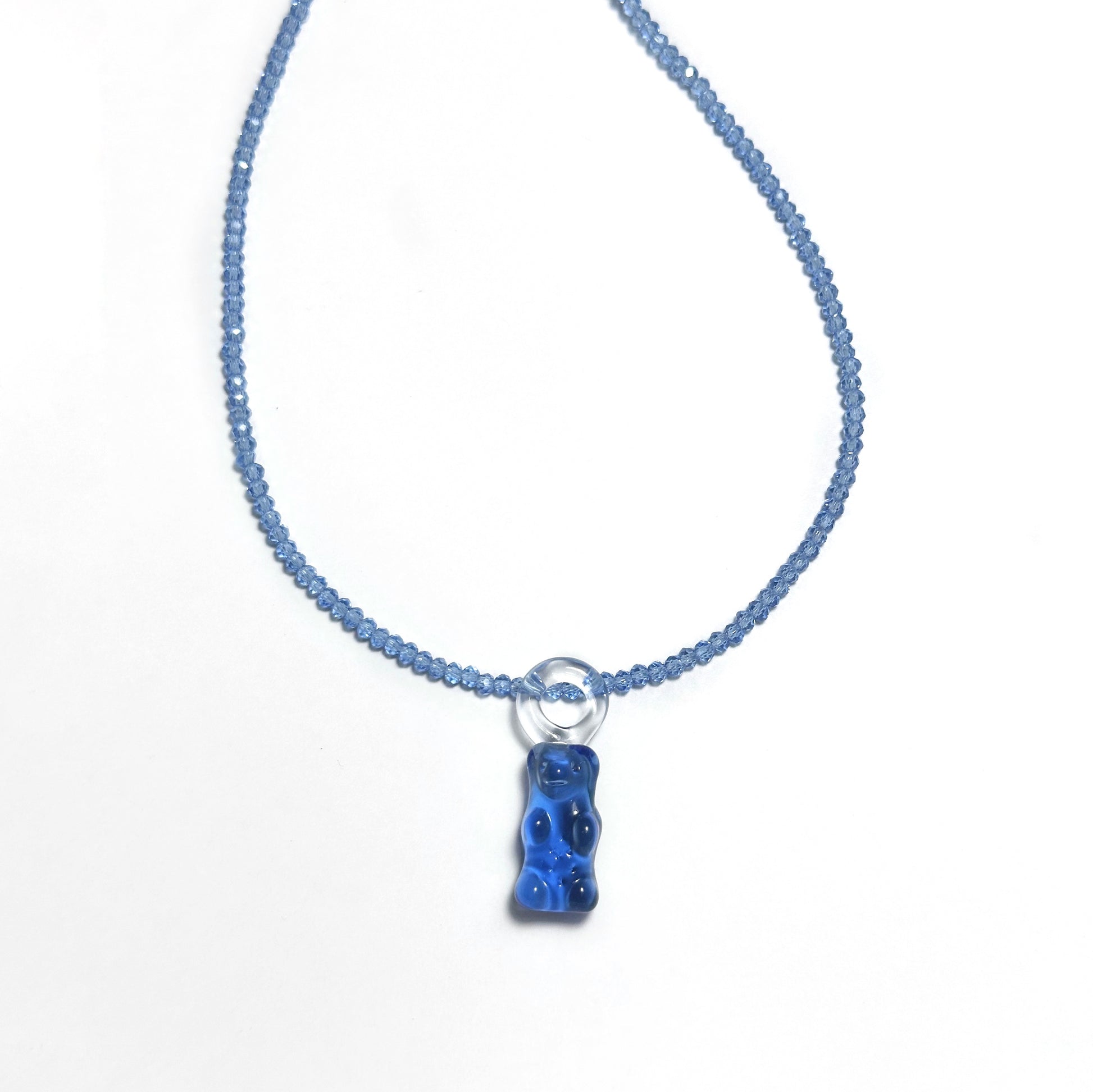 Collar cristales fascetados, con dije de Bear de vidrio soplado y broche plata .925