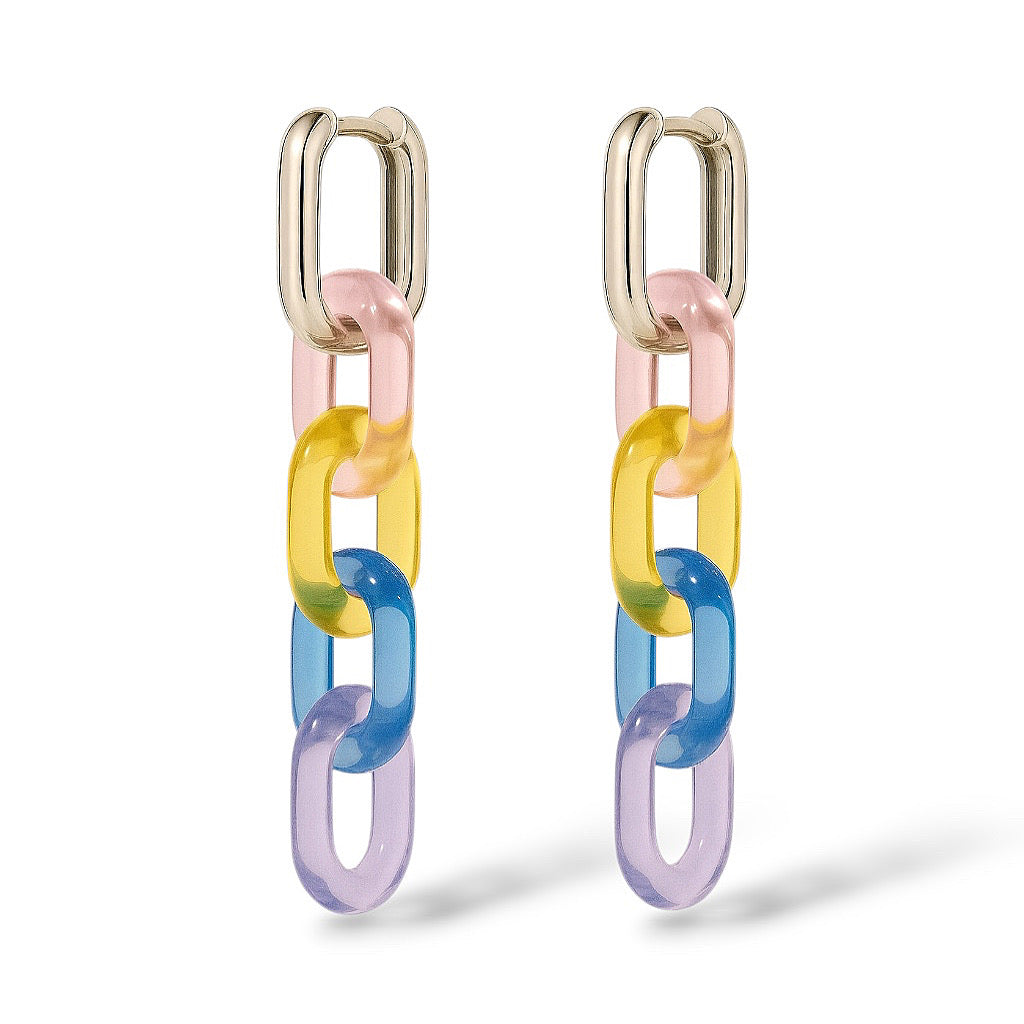 Huggies 1.5 cm largo acero inoxidable con baño de plata .925 y dijes de eslabón hechos a mano en vidrio soplado.