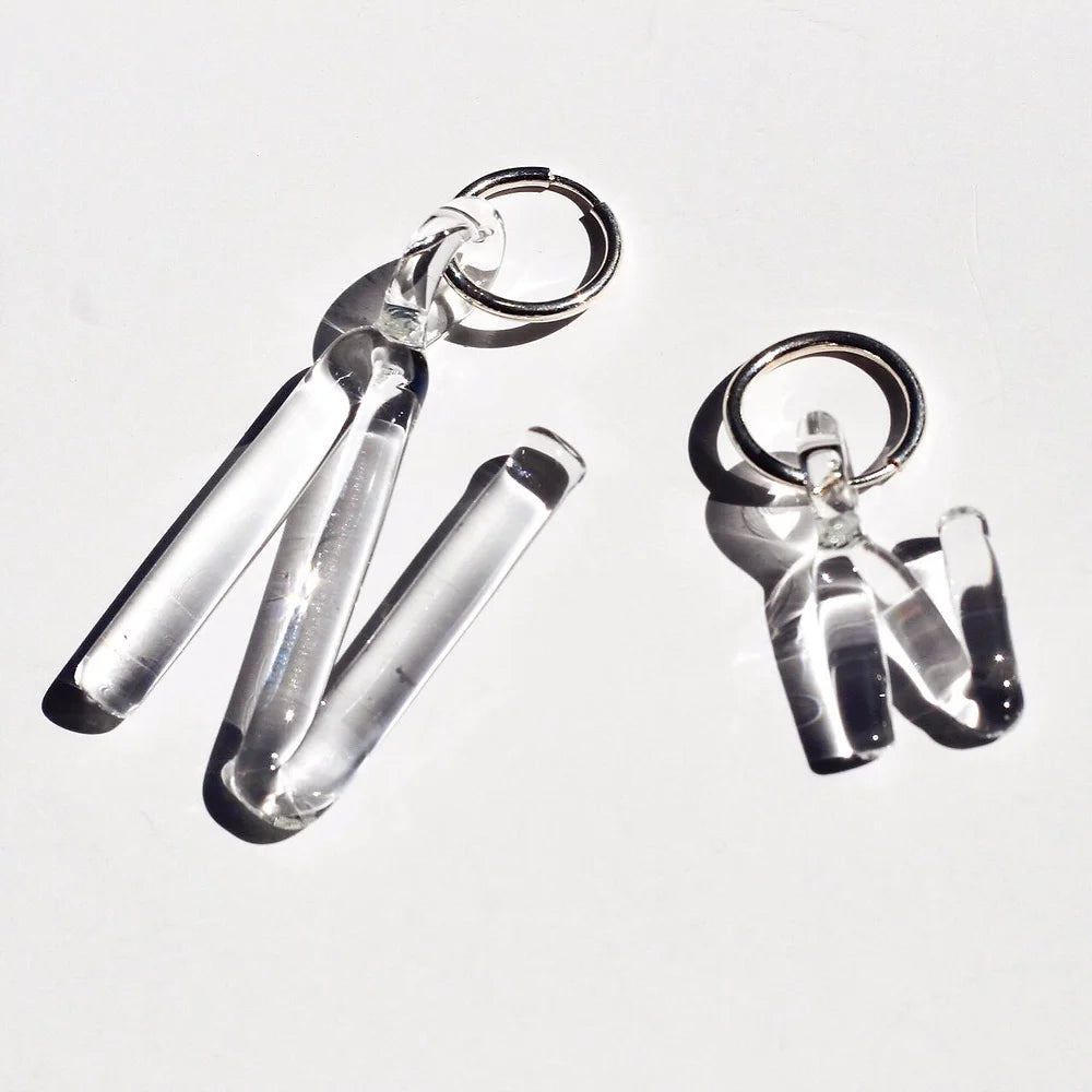 Huggies 1 cm plata .925 con 2 dijes de vidrio soplado inicial, letra y color a elegir MINI Y MAXI.
